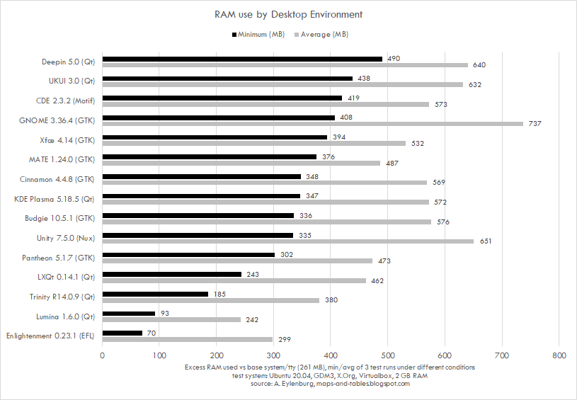 Again, click here to see an older version of this comparison which includes additional desktop environments (Pantheon, Deepin, UKUI, CDE, Enlightenment, Trinity, UnityX, and Lumina). This extended comparison was up to date as of beginning 2022 but will not be updated anymore.