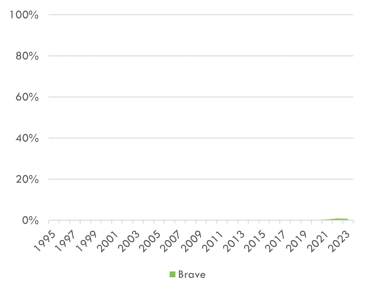 | Predecessors and first release | 1994 Netscape → '98 Mozilla → '02 Firefox | 2003 Safari | 2008 Chromium/Chrome | 1995 Internet Explorer → 2015 Edge | 1995 Opera | 2016 Vivaldi | 2016 Brave | |||||||||||||